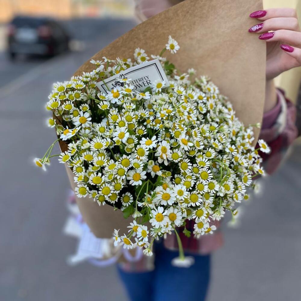Букет из 21 матрикарии в стильной крафтовой упаковке “Ласкабан”