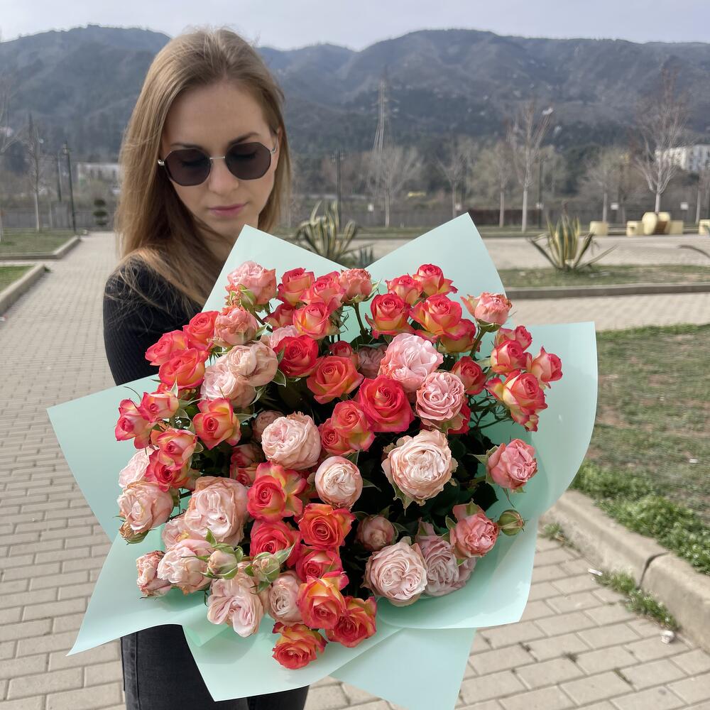 Разноцветный микс из веточной розы может включать в себя несколько из этих цветов, а также другие оттенки и комбинации цветов. Доставка по Тбилиси бесплатно!