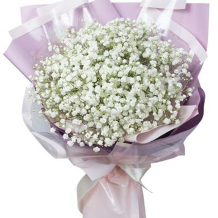 Воздушное облако белой гипсофилы с оформлением будет прекрасным подарком для возлюбленной. Такой букет не только красивый, но и долгое время будет радовать получателя своей красотой.