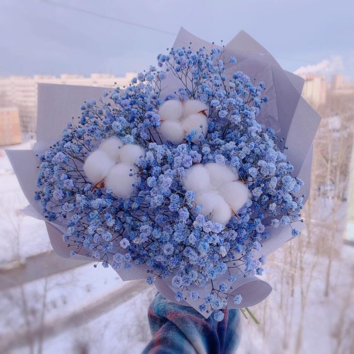Букет голубой гипсофилы с хлопком☁️