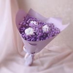 Хлопок – 3 шт.Лента атласная – 1 шт.Упаковка дизайнерская – 1 шт.Гипсофила фиолетовая – 3 шт.