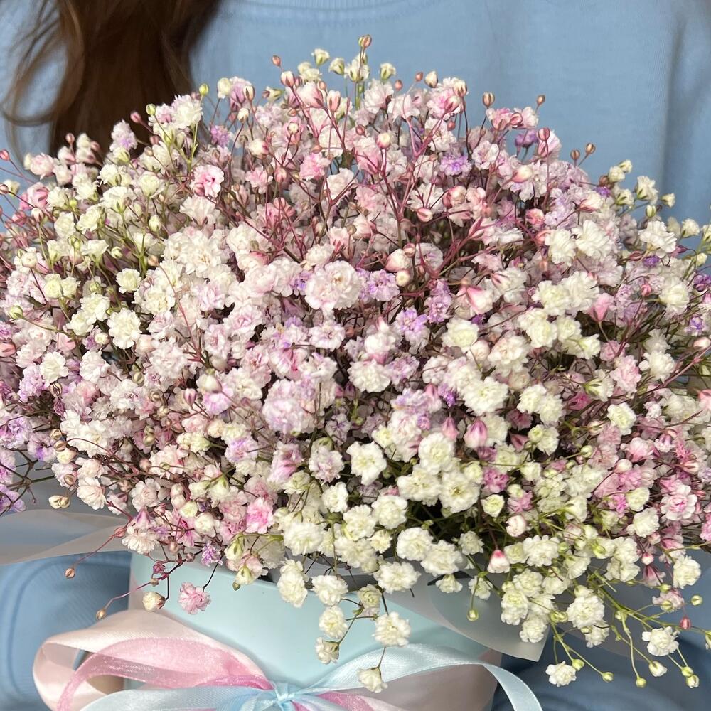 Воздушная гипсофила в шляпной коробке