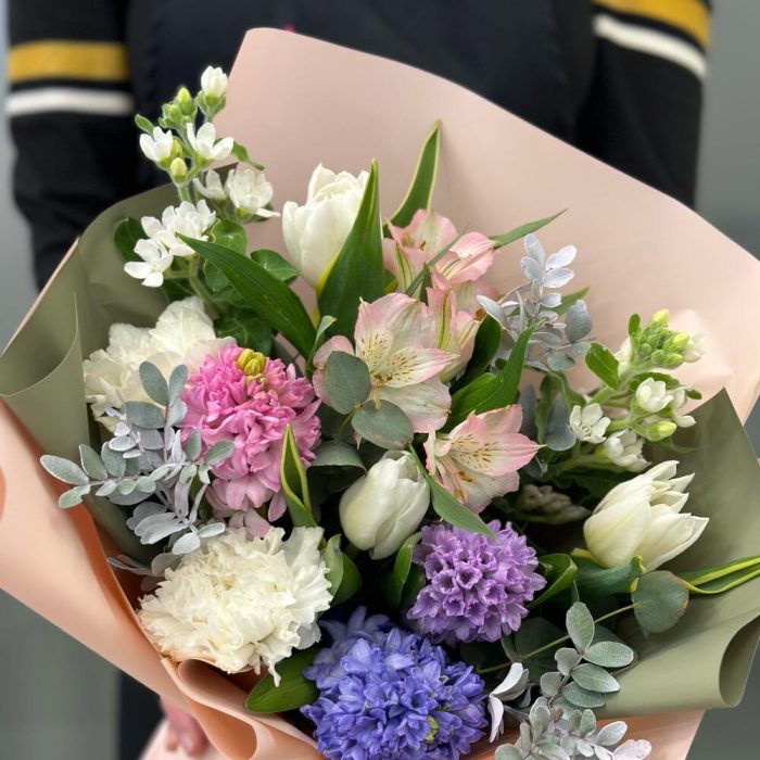 Букет с гиацинтами и тюльпанами