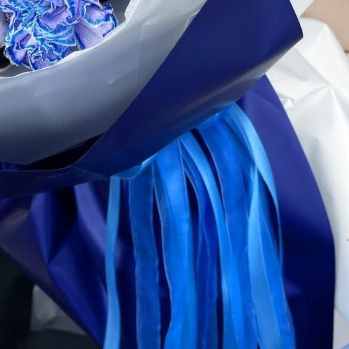 Гвоздика – 7 шт.Хлопок натуральный – 8 шт.Лагурус (сухоцвет) – 7 шт.Лотос (коробочка) – 1 шт.Тишью – 2 шт.Пленка матовая – 2 шт.