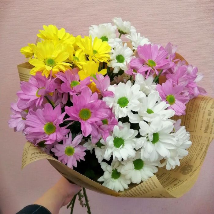 Лента – 1 шт.Хризантема кустовая – 5 шт.Упаковка – 1 шт.