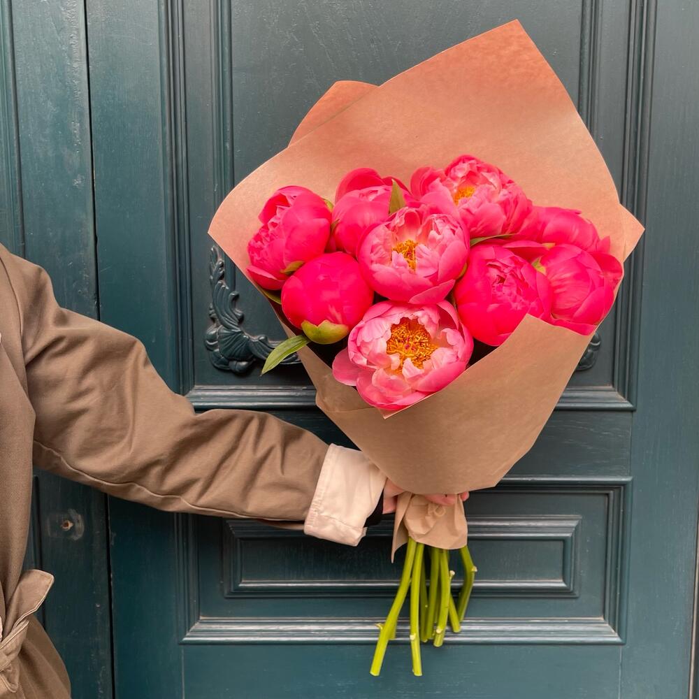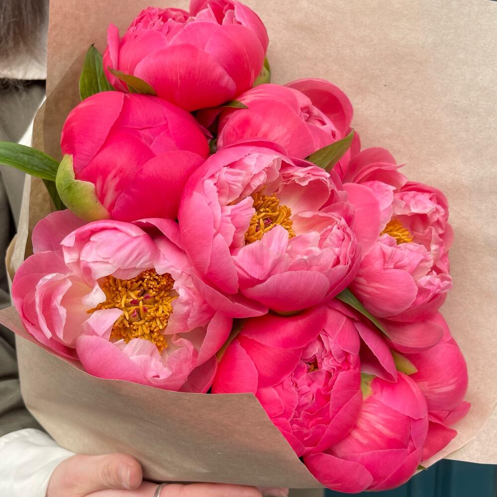 Коралловые пионы 7 шт в крафте