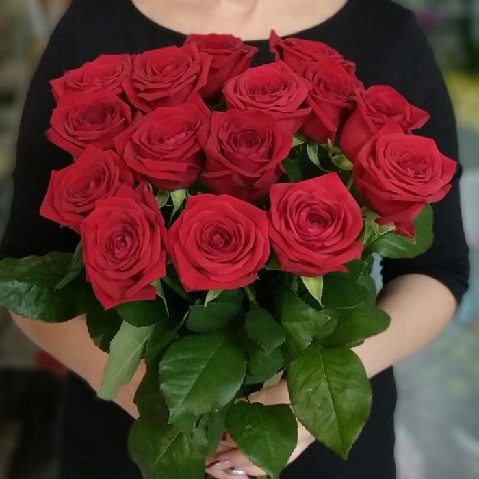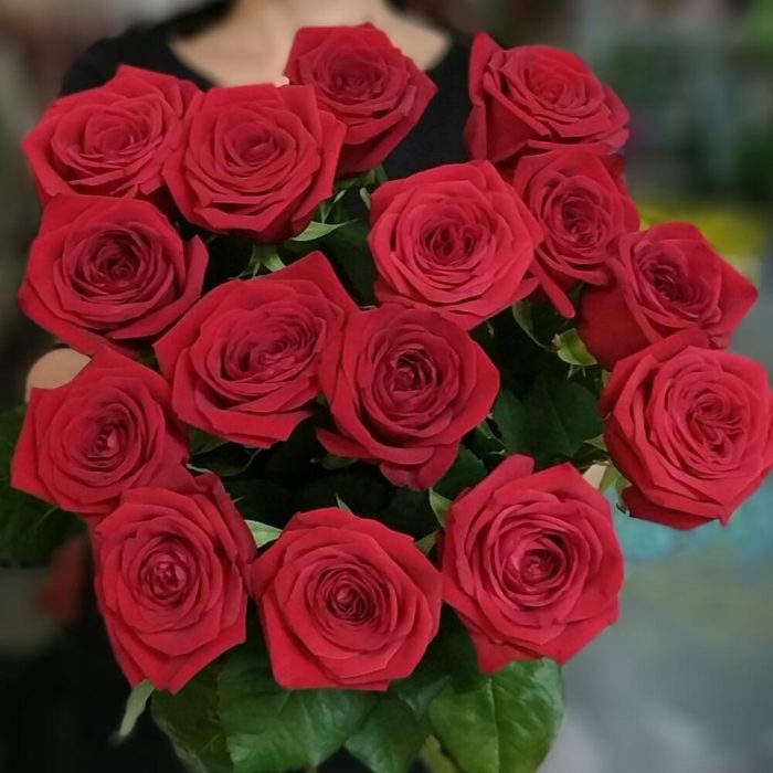 Метки: 15 роз, Красные розы, от 2000 до 3000 руб, Роза 50 см