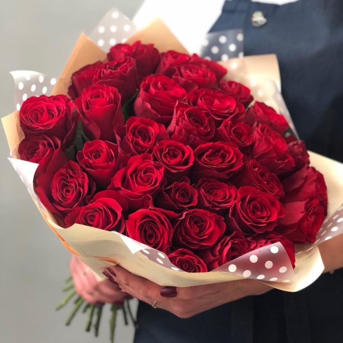 Роза красная – 35 шт.Крафт – 3 шт.