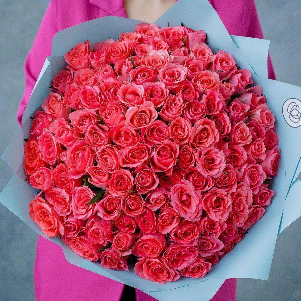 Букет из 101 коралловой розы 40 см (Кения)