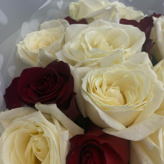 Роза красная – 7 шт.Роза белая – 8 шт.