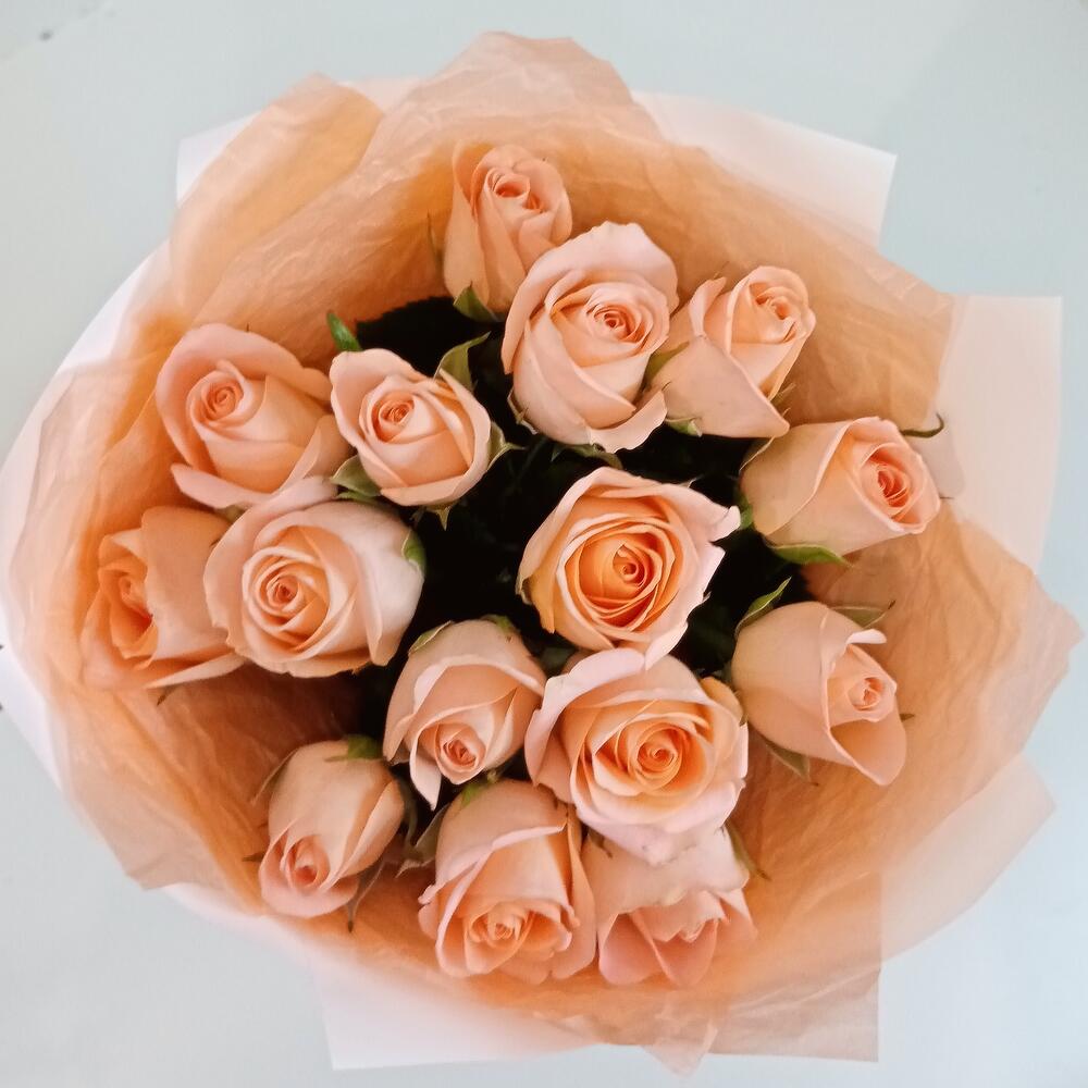 Букет из 15 роз персиковых