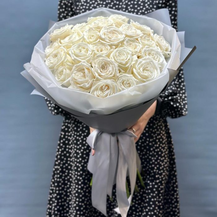 Букет из 25 пионовидных белых роз