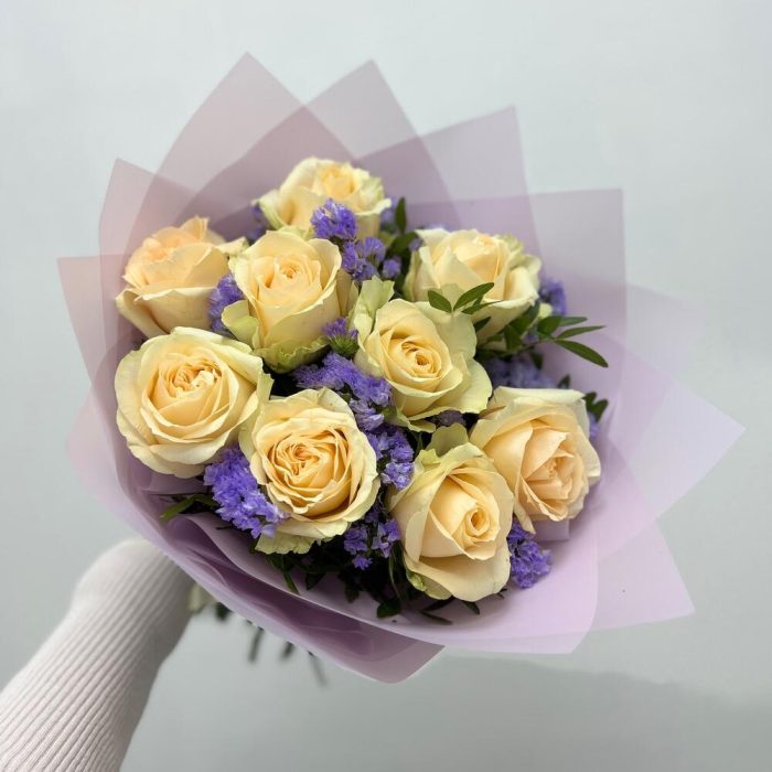 Букет из Чайных Роз и Статицы