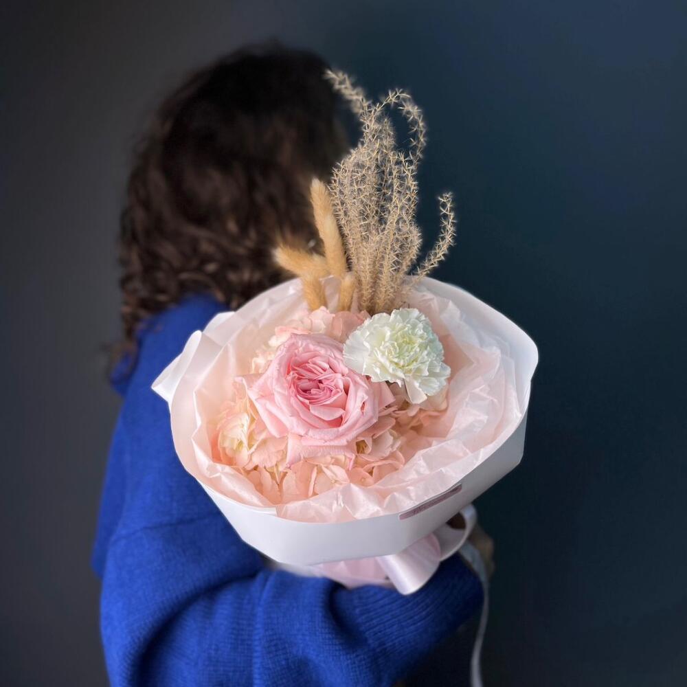 Категории: Гвоздики, Гортензии, Розы, Сухоцвет