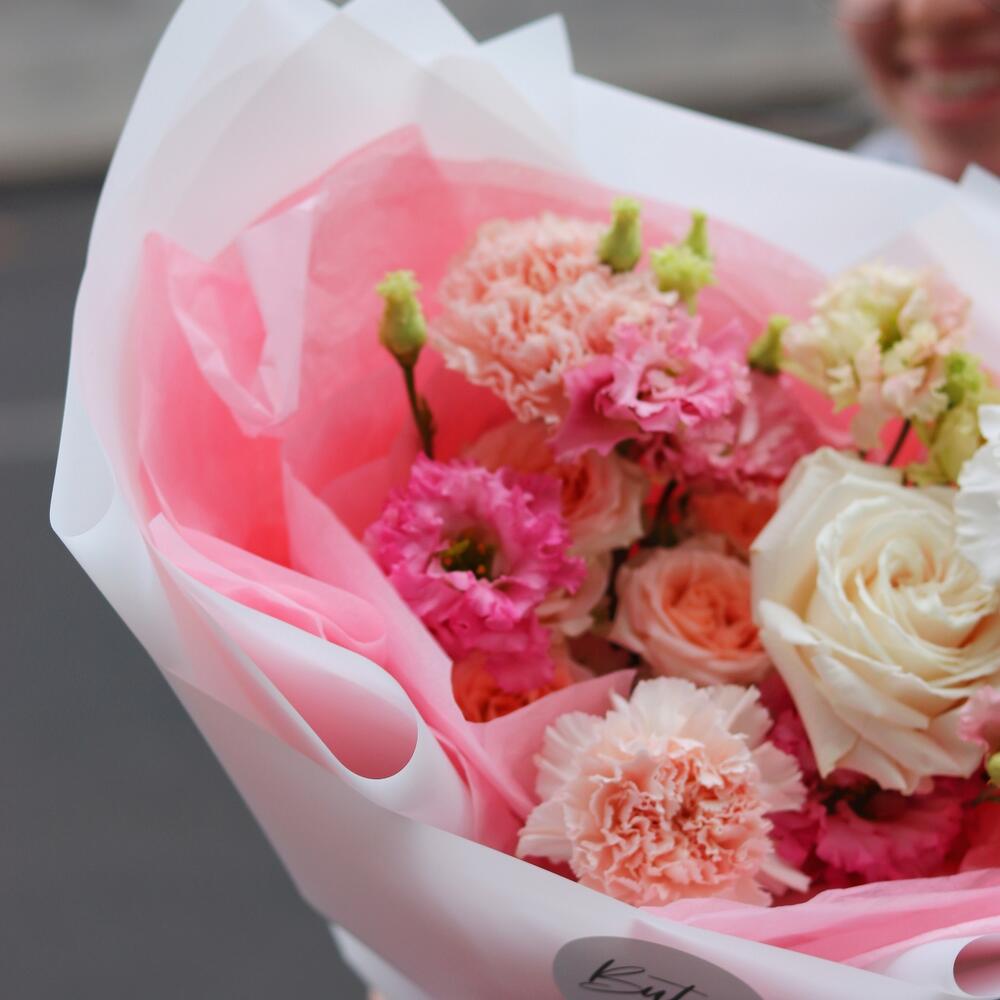 Категорий: Гвоздики, Кустовые розы, Лизиантусы, Пионовидные розы, Розы