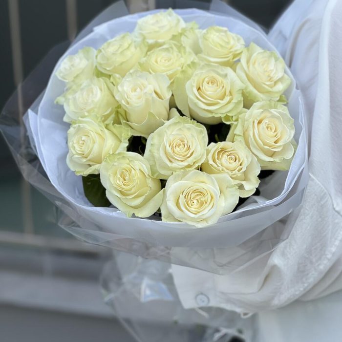 Метки: 15 роз, Белые розы, На свадьбу, от 2000 до 3000 руб, Роза 50 см