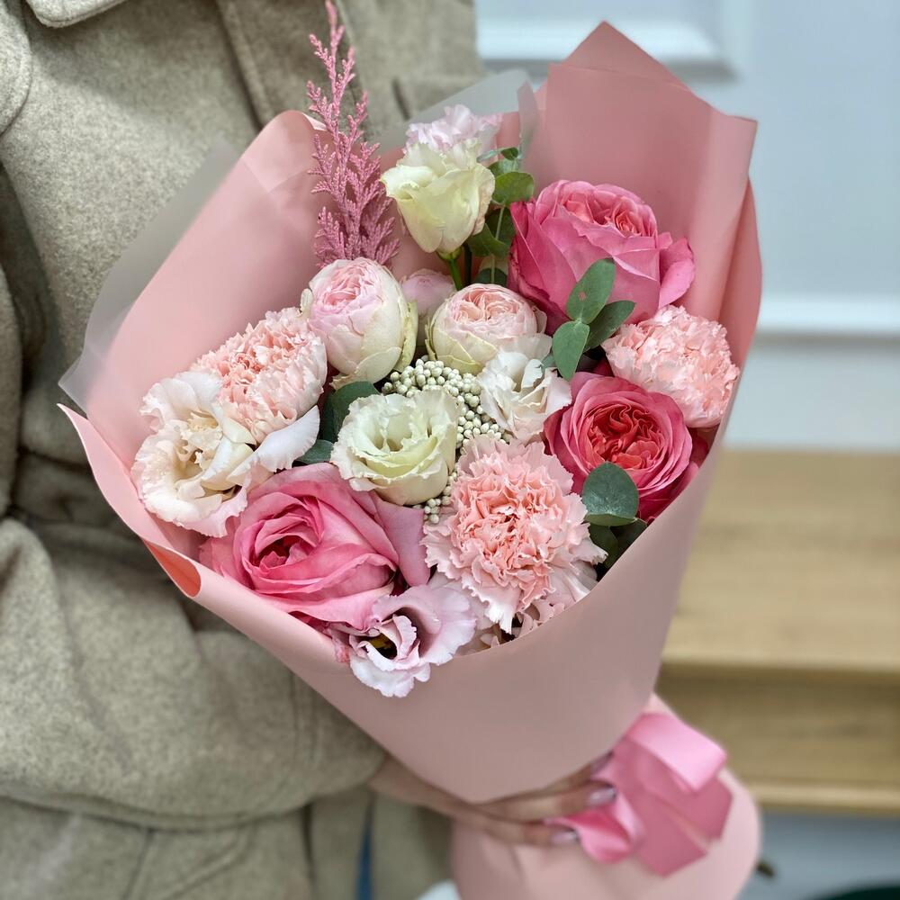 Категорий: Гвоздики, Кустовые розы, Лизиантусы, Пионовидные розы, Розы