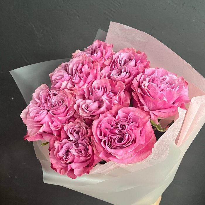 Упаковка дизайнерская – 1 шт.Открыточка с вашими пожеланиями – 1 шт.роза пионовидная кантри блю – 9 шт.