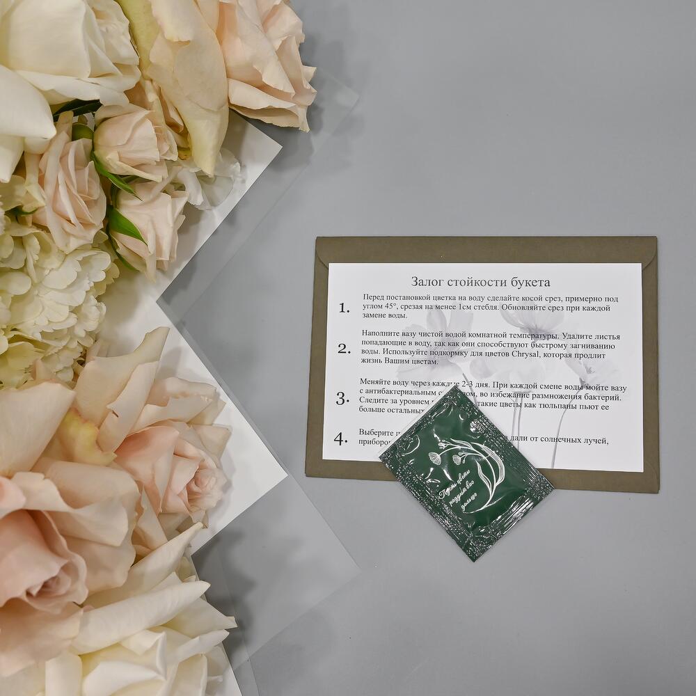 - Сроки возврата: Претензии по качеству букета принимаются в течение 24 часов с момента его получения.
