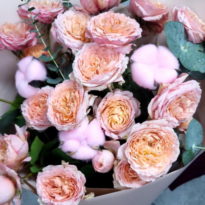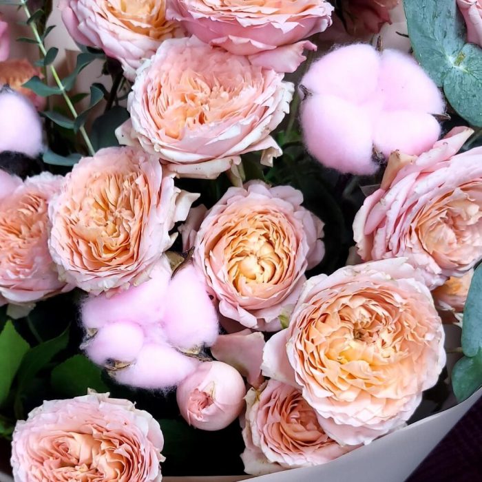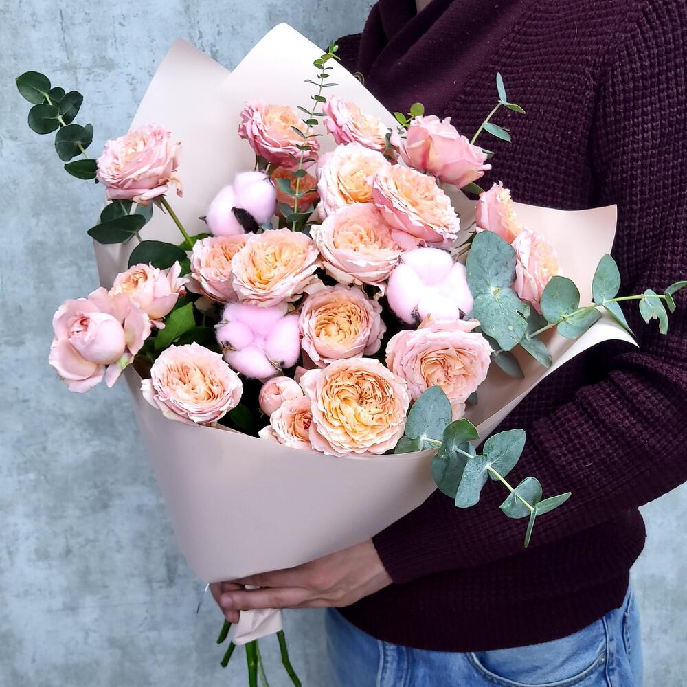 Альстромерии, Кустовые розы, Лизиантусы, Пионовидные розы, Розы, Ромашки