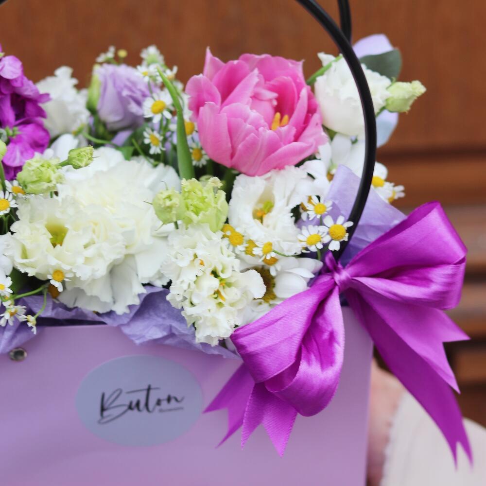 Нежная композиция с тёплым, весенним настроением Сиренево-розовая гамма – идеальный и всеми любимый вариант подарочного букета, который будет очень долго радовать свою получательницу.В подарок к букету шоколадка для прекрасной получательницыМы также можем отправить вместе с букетом конфеты, шоколад ручной работы или б/а вино по вашим пожеланиям, просто напишите нам в личные сообщения Предоставляем исключительный сервис и заботу о клиенте