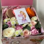 “Атлас☁️” – цветочная композиция с зефиром в деревянном ящике