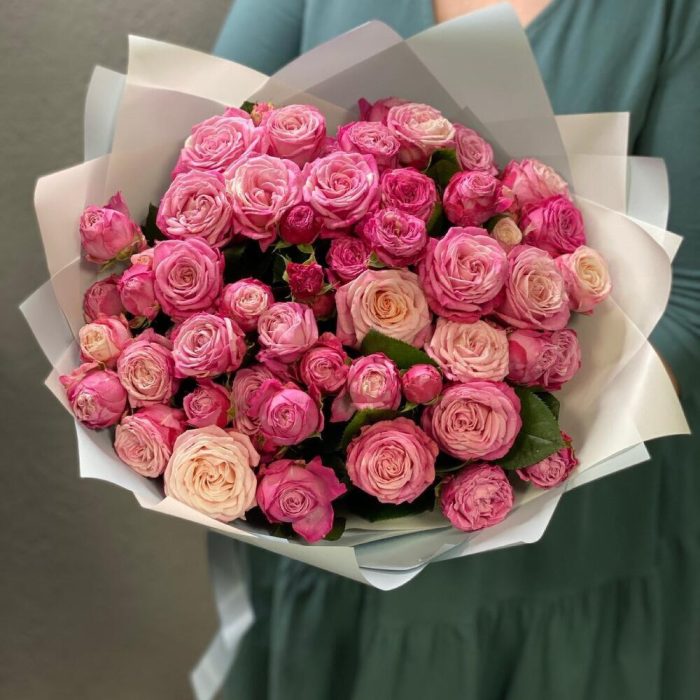 9 кустовых пионовидных роз Сильвия Пинк