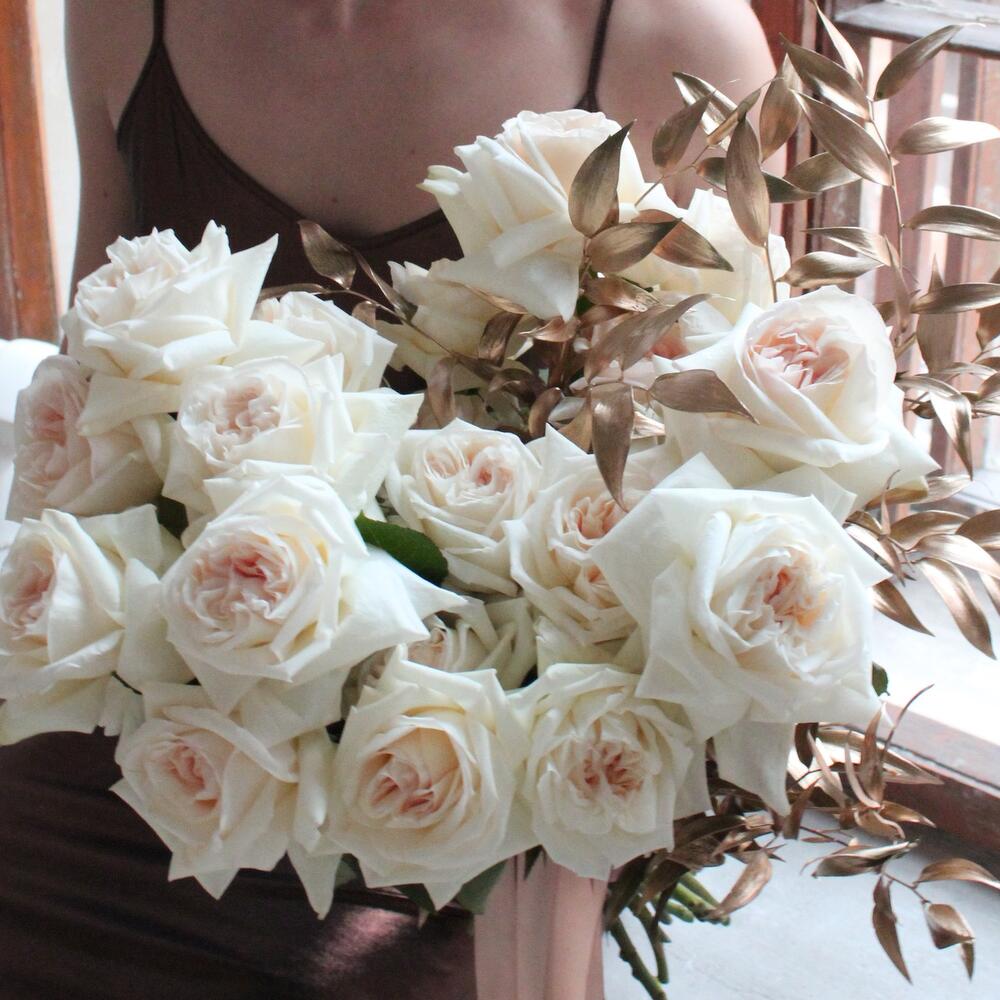 роза садовая white o hara – 17 шт.Рускус крашенный – 3 шт.