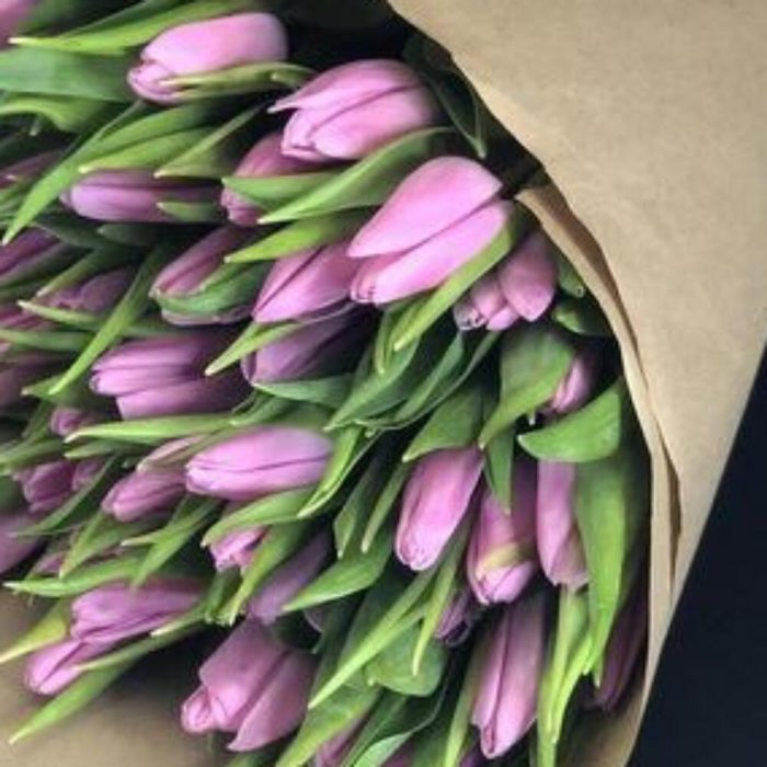 Сиреневые тюльпаны в крафте