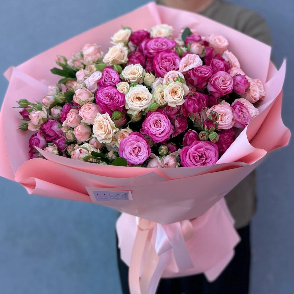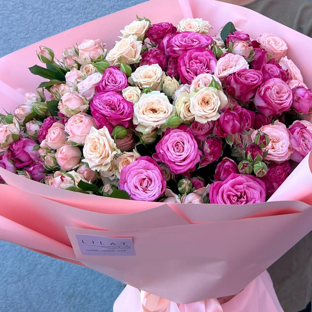 Гвоздики, Кустовые розы, Лизиантусы, Пионовидные розы, Розы